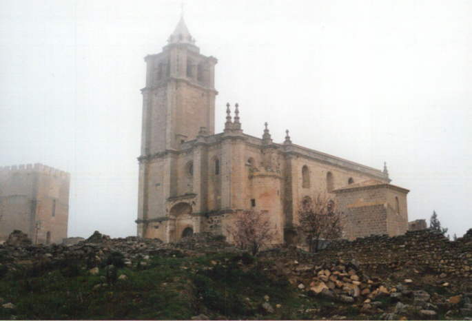 In der Anlage steht eine stark zerstörte Kathedrale. Ein sehr freundlicher Wachmann öffnete uns die Portale, machte uns auf so manches Detail aufmerksam und ließ uns ungestört fotografieren. Auf dem Bild ganz rechts (sorry für den Belichtungsfehler) sieht man die Ruine, im Hintergrund Alcala la Real. |
