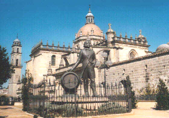 Tio Pepe, im Hintergrund die Kathedrale von Jerez